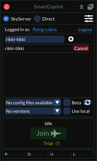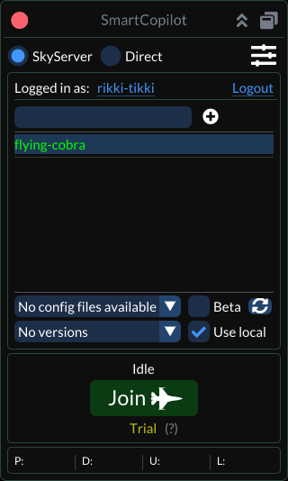 The main plugin window will be visible after restarting X-Plane and entering the flight. Users can always show the main window by navigating the X-Plane top menu: Plugins - SmartCopilot - Show UI.