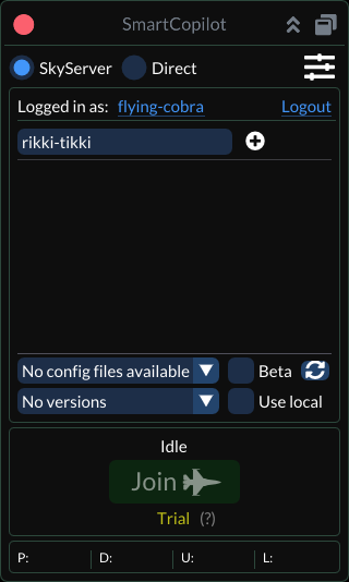 The main plugin window will be visible after restarting X-Plane and entering the flight. Users can always show the main window by navigating the X-Plane top menu: Plugins - SmartCopilot - Show UI.